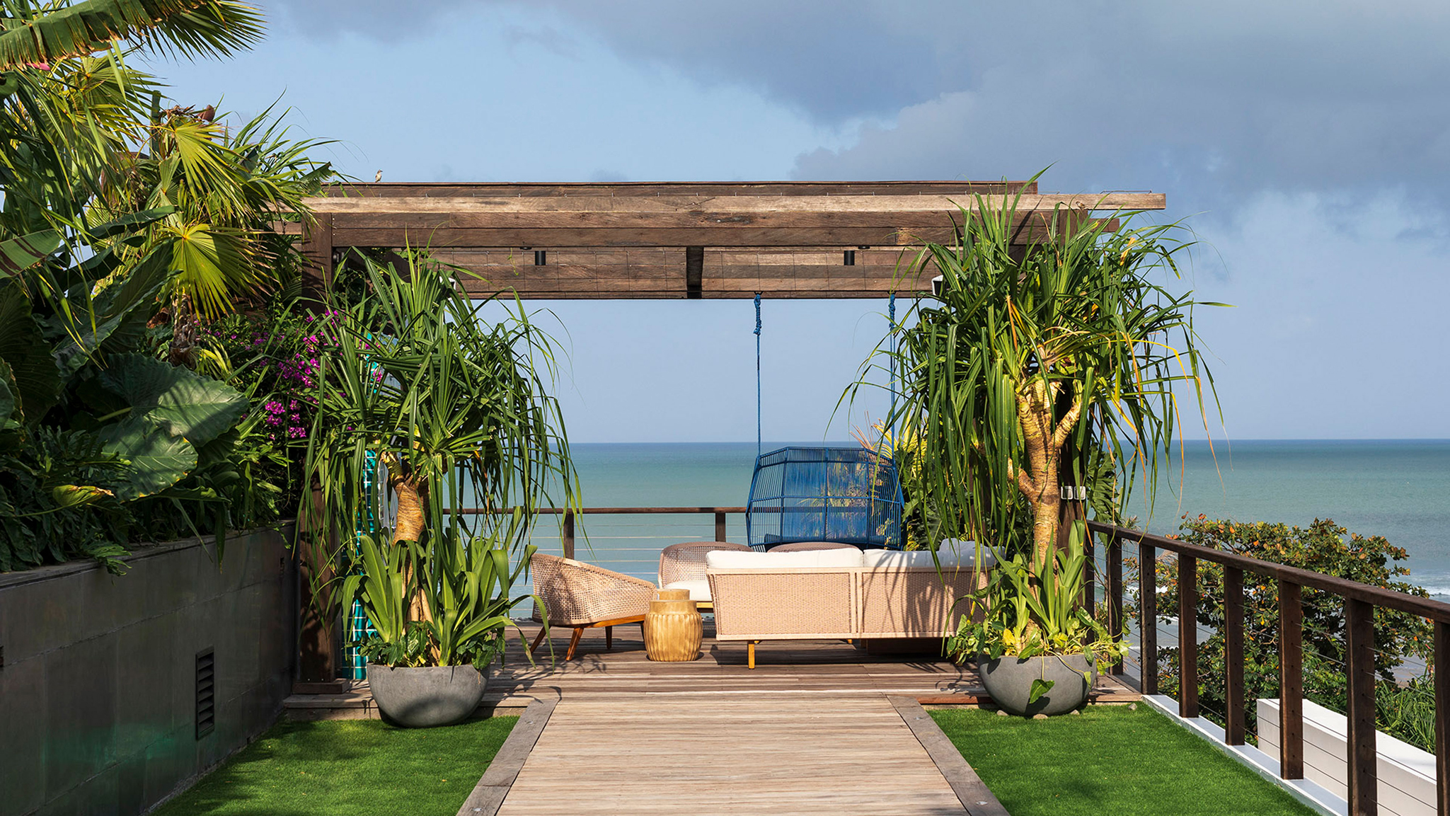 Noku Beach House is the ultra-glam star of Seminyak's exclusive beachfront. With six bedrooms, an army of six-star staff including a gourmet chef, and your own personal maître'd, this Seminyak beachfront villa ensures the ultimate in holiday pleasure. An enormous entertaining bale with decks and covered terraces, a spa with plunge pool plus vast tropical gardens and a fabulous ocean-front all flank the sparkling 27-metre pool. Rooftop gardens overlook the ocean making gorgeous hideaways for sundowners. Noku Beach House is an epic retreat as Zen as it is chic right in the heart of hip Seminyak, Bali.