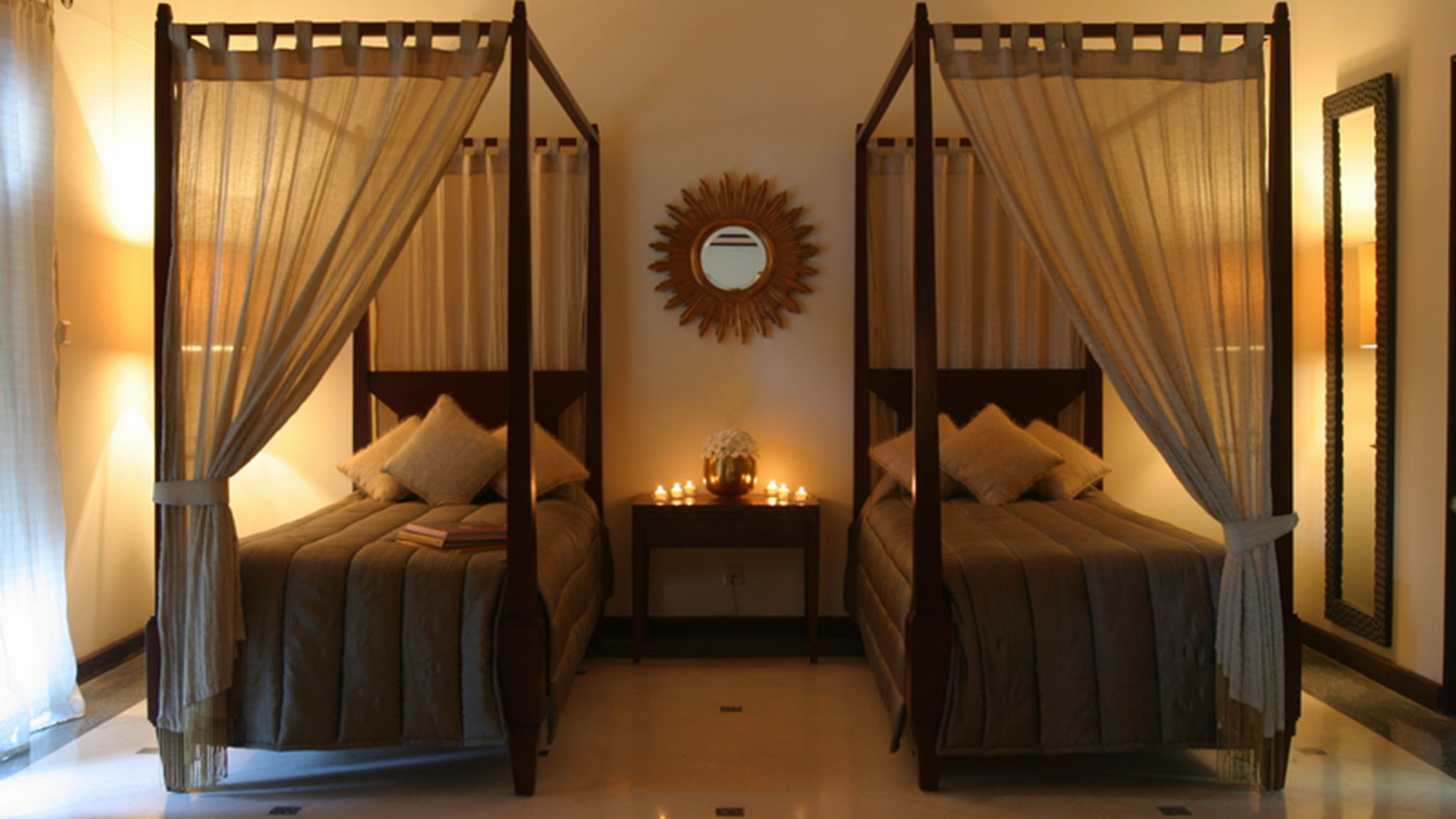 Junior Bedrooms - Two twin rooms which are accessed via internal sliding doors from each of the queen guestrooms – ideal for families with children. Twin bed configuration with mosquito netting (in one room). Ensuites with showers. Air-conditioned.