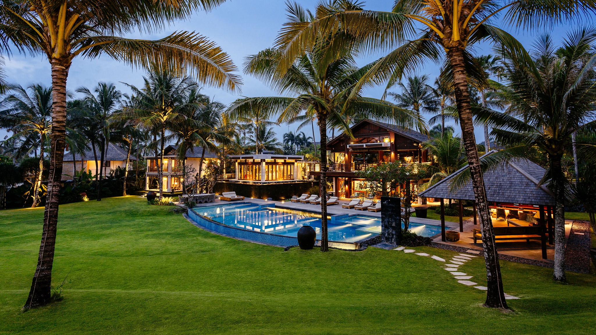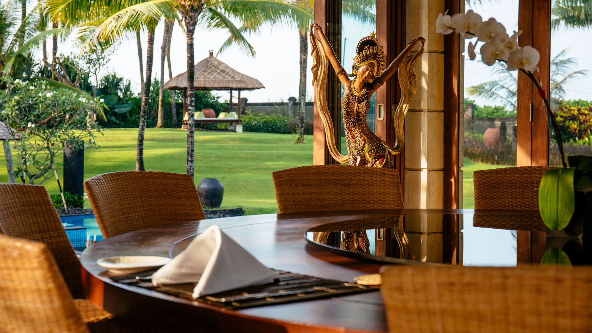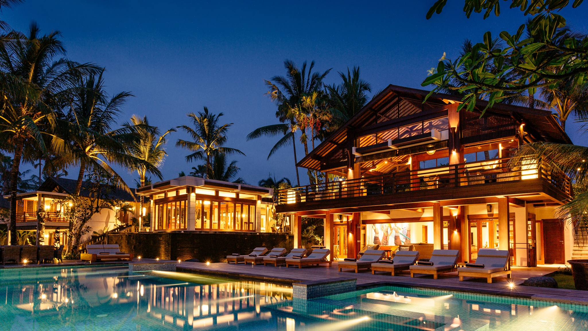 Villa Semarapura overlooks a magical sea temple crowning a dramatic outcrop of black volcanic rock on Bali’s south-west coast. Boasting breath-taking ocean views just beyond its vast rolling lawns, this beautifully designed villa features five luxurious bedroom suites, formal living and dining pavilions, a media room, and 20-metre swimming pool. The charming staff work hard to deliver a unique and memorable experience, from serving up succulent seafood feasts and mixing exotic cocktails at the bar, to arranging spa treatments in the massage bale and guiding guests on rice-field walks.